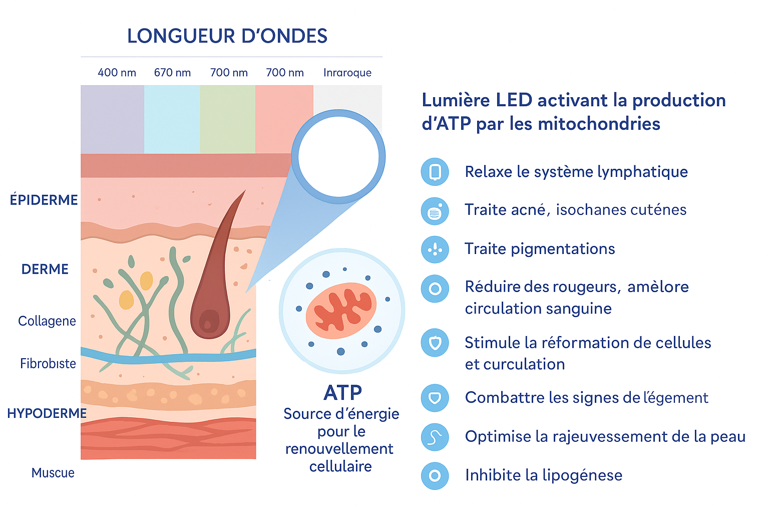 Les LED agissent à différents niveaux pour optimiser la santé de la peau :